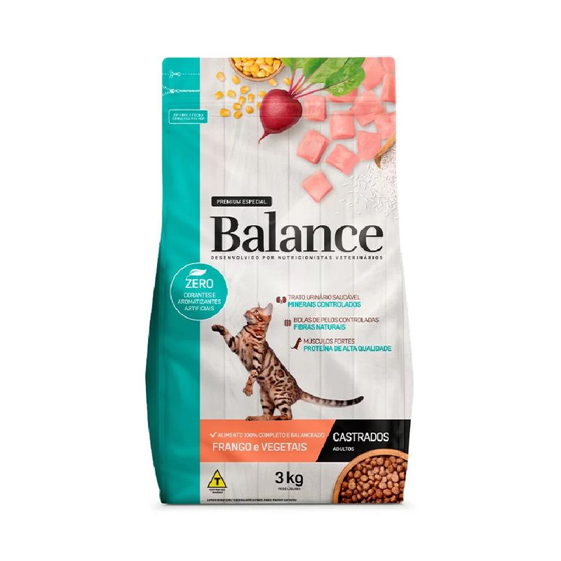 Alimento p/ Gatos Balance Adultos Castrados Frango 3Kg