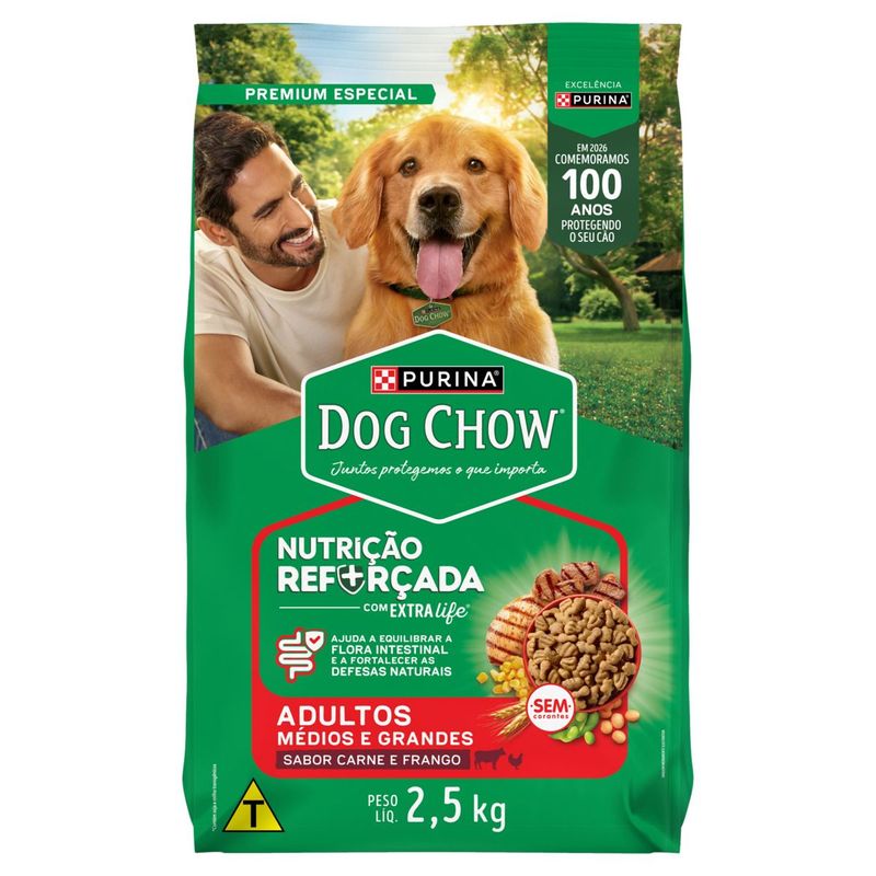 Dog Chow® Nutrição Reforçada para Adultos Médios e Grandes é um alimento completo e balanceado, com EXTRAlife® , uma combinação especialmente desenvolvida de antioxidantes, vitaminas e minerais que ajuda a prevenir a oxidação das moléculas no corpo, retardando os sinais de envelhecimento e protegendo-o, dia após dia. Também conta com proteínas e ingredientes de alta qualidade para ajudar a proteger o a saúde e o bem-estar do seu cão. Juntos Protegemos o que Importa.