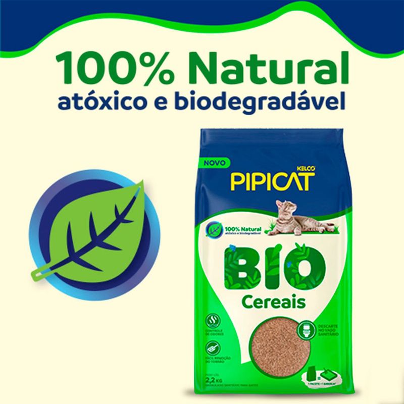 Areia Sanitária Pipicat Bio Cereais Granulada 2,2Kg