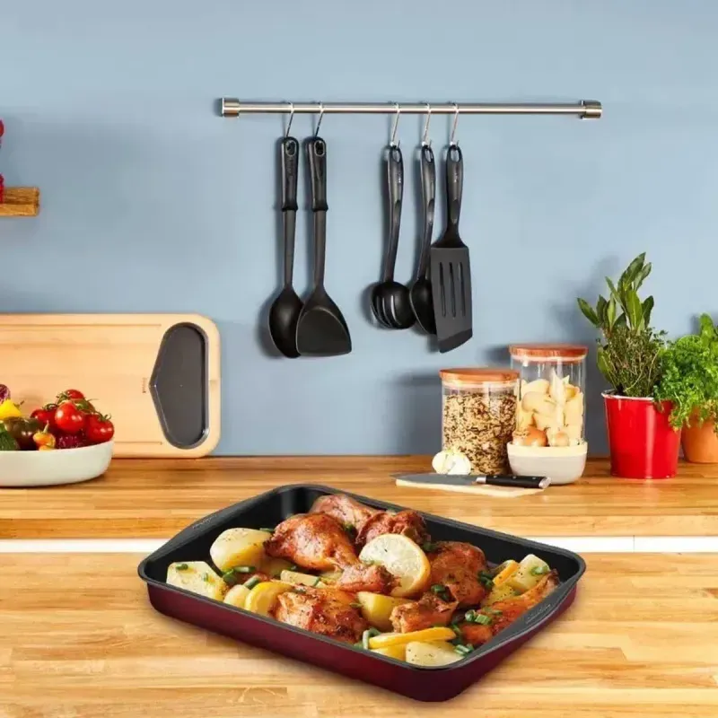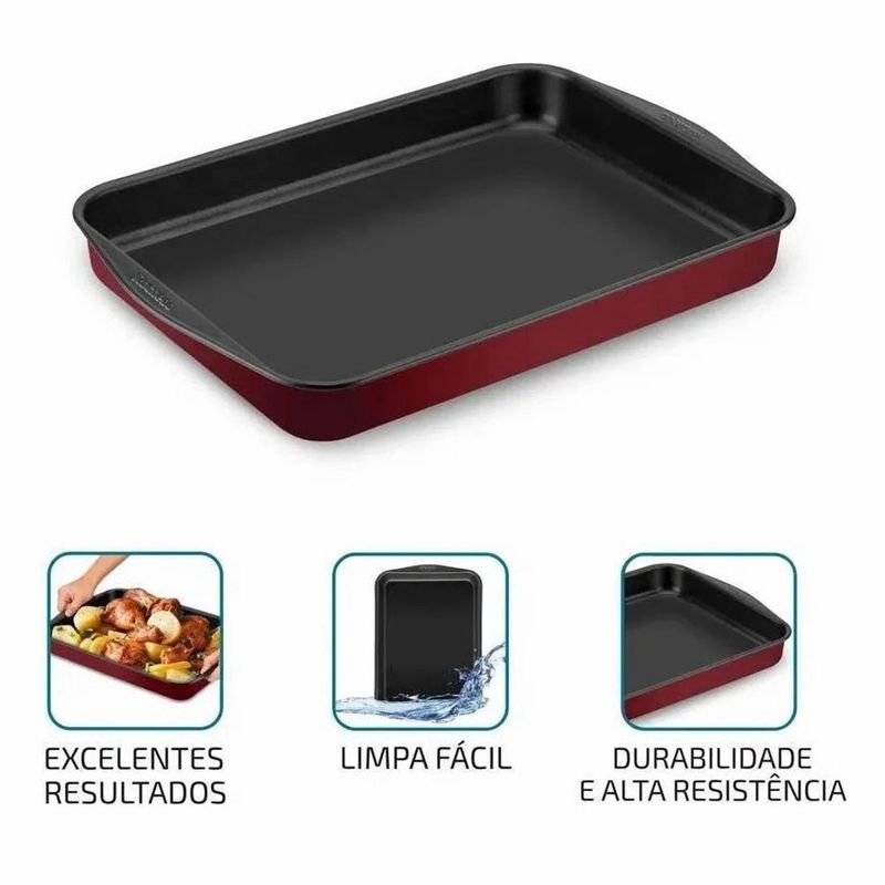 Assadeira Rochedo Retangular Antiaderente Vermelha 44cm x 30cm