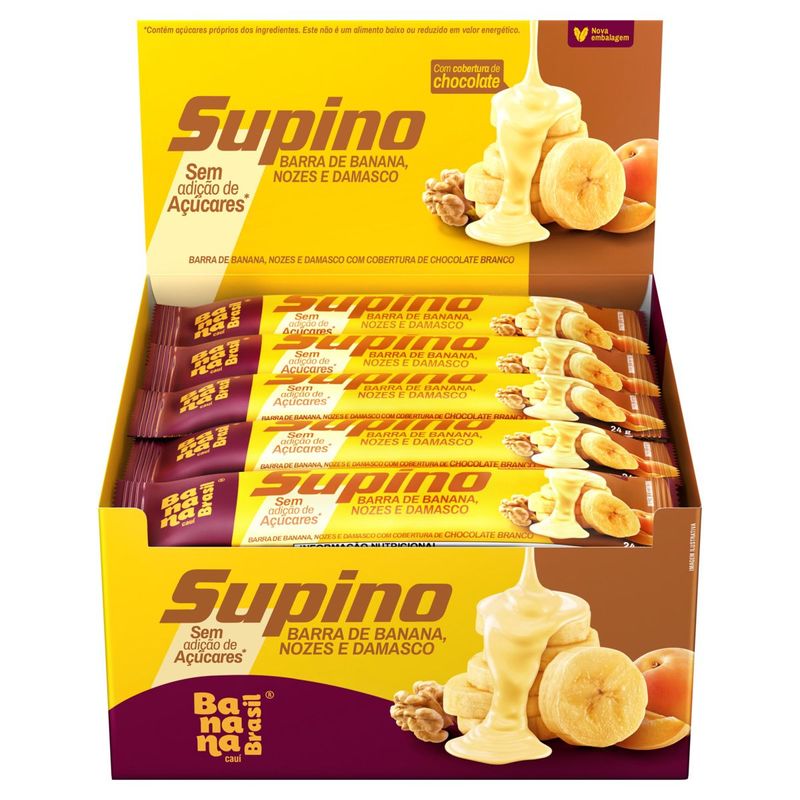 Barra de Frutas Supino sem Açúcar Banana, Nozes e Damasco Cobertura Chocolate Branco 24g