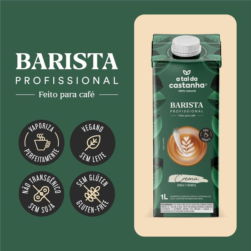 O leite vegetal A Tal da Castanha Barista, sabor caju e aveia, é uma bebida saborosa, nutritiva e 100% vegetal. Desenvolvida para tornar seu café perfeito, pode acompanhar bebidas quentes e frias. É a alternativa perfeita ao leite, sem aditivos artificiais ou conservantes, livre de glúten, soja e lácteos. Ideal para veganos, vegetarianos e pessoas com dietas restritivas. Nesta versão, seu leite vegetal A Tal da Castanha vem em embalagem de 1 litro.