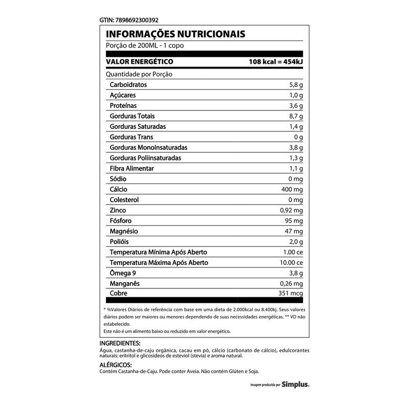 Bebida A Tal da Castanha Choconuts Zero 1l