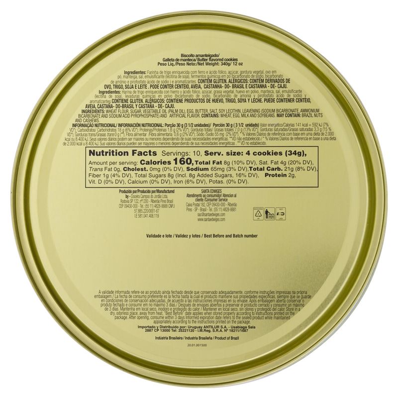 Os Butter Cookies Amant Santa Edwiges vêm em uma embalagem de 340g, ideal para quem busca qualidade e sabor em um só produto. Com um cuidado especial na seleção dos ingredientes, cada biscoito é uma celebração da tradição e do amor pela confeitaria.