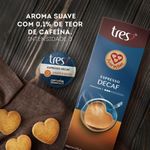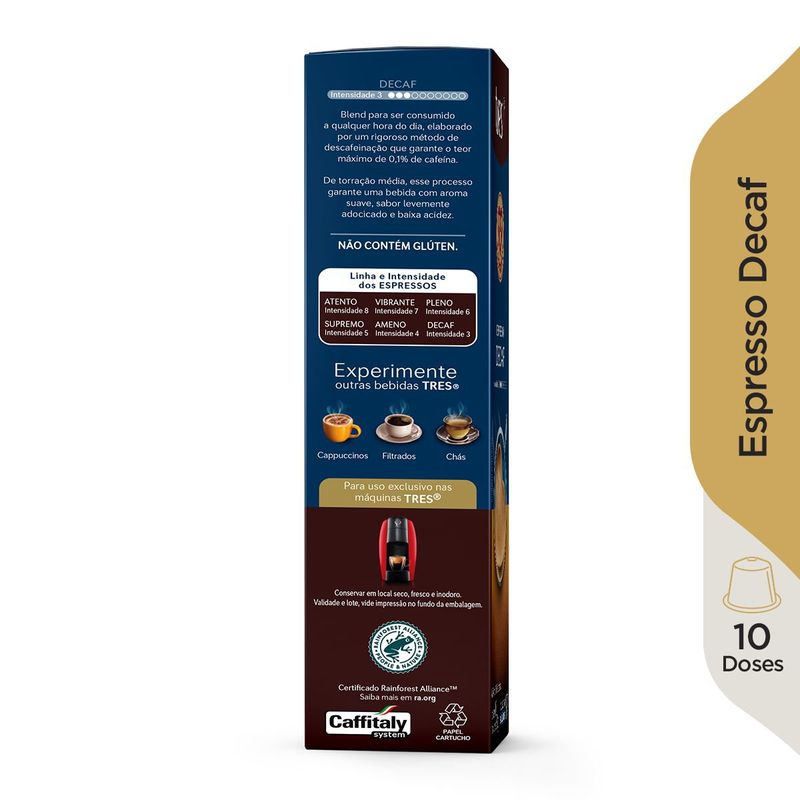 A cápsula 3 Corações Espresso Descafeinado oferece a você uma bebida com aroma suave, sabor levemente adocicado e baixa acidez. Conta com reduzido teor de cafeína (máximo 0,1%), sendo uma excelente opção para quando bater a vontade de um cafezinho. Seja sozinho, em família, com os amigos ou no trabalho, esta cápsula de café faz uma bebida encorpada, cremosa e deliciosa diretamente das máquinas Tres para conquistar você. O produto vem em 10 unidades de 8 gramas.