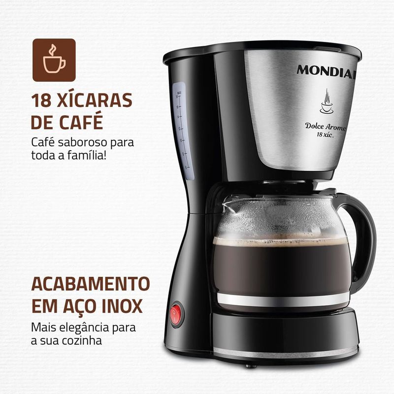 Cafeteira Elétrica Mondial Dolce Arome C-30 18 Xicaras Preto/Inox 550W 220V
