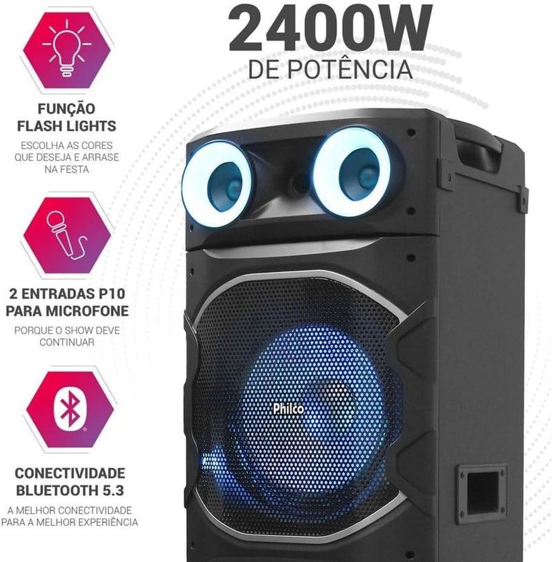 Seja em festas, eventos ou apresentações, a Caixa de Som Amplificada Philco é a solução completa para quem busca qualidade sonora, conectividade de ponta e uma experiência de áudio imersiva.
