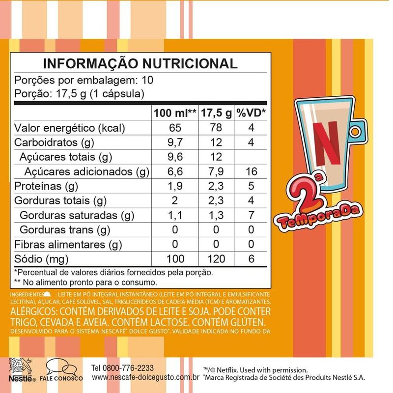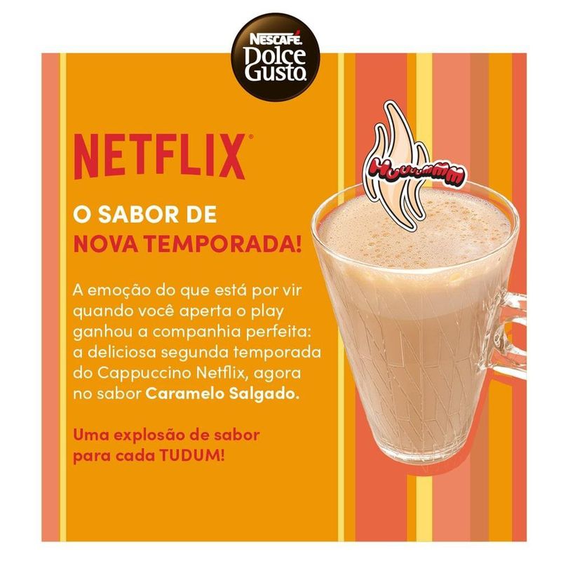 Desfrute de uma experiência única com o Café em Cápsula Nescafé Dolce Gusto Netflix 2 Caramelo Salgado 10 Cápsulas 170g. A combinação irresistível de café cremoso, caramelo doce e um toque sutil de sal cria uma bebida de sabor equilibrado e delicioso. Perfeito para os momentos de relaxamento, seja assistindo sua série favorita ou compartilhando uma pausa com amigos. Com 10 cápsulas em cada embalagem, você pode saborear essa bebida surpreendente a qualquer hora do dia. Prepare em poucos minutos e aproveite o sabor que só Nescafé e Netflix podem proporcionar!