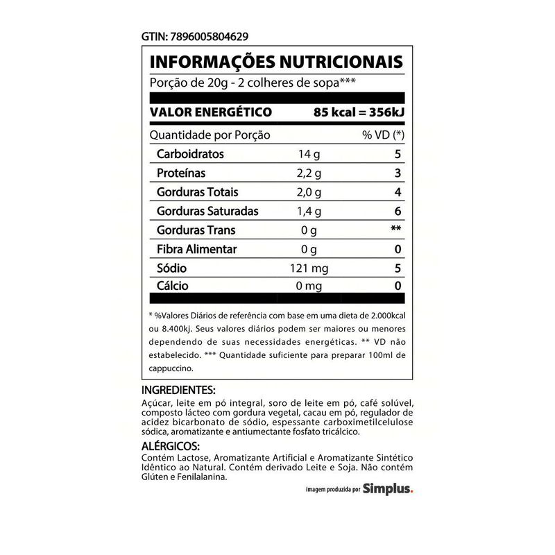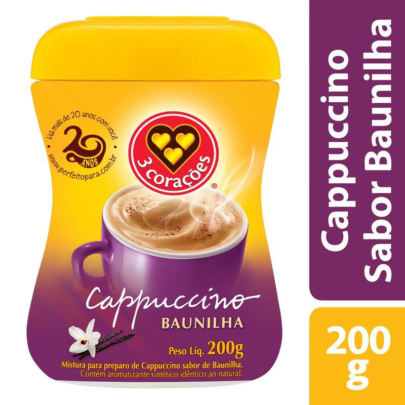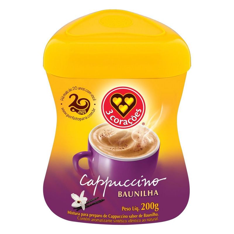 Cappuccino Solúvel 3 Corações Baunilha Pote 200g