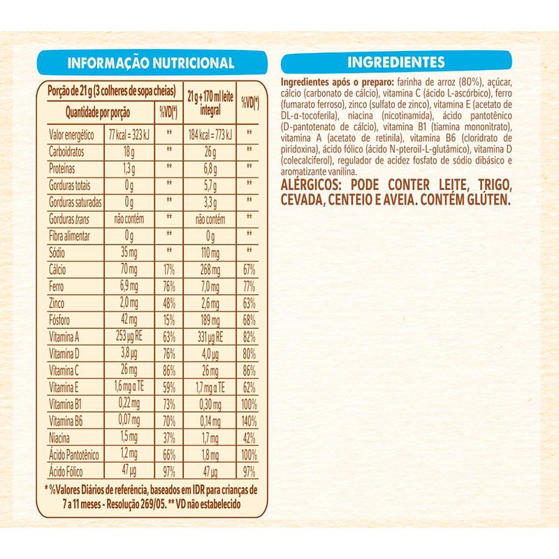 Mucilon Arroz é um cereal infantil indicado para crianças a partir de 6 meses. É rico em nutrientes que contribuem para a Imunidade¹ e Desenvolvimento Cerebral². ¹Vitaminas A,C,D,E,B9 (ÁCIDO FÓLICO), FERRO E ZINCO ²FERRO E ZINCO
