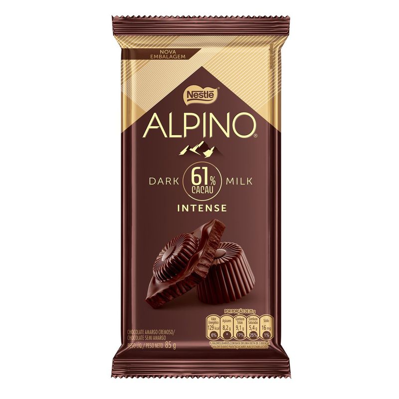 Chocolate Amargo Alpino Dark Milk 61% Cacau Intense 85g