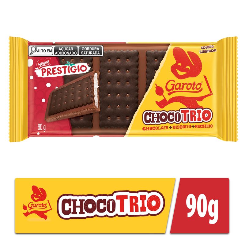 Chegou o Choco Trio Prestígio, o chocolate que você já adora, agora com um recheio de Prestígio! Com a cremosidade do recheio de coco e a cobertura de chocolate ao leite, cada pedaço é uma verdadeira delícia. A embalagem de 90g é perfeita para saborear em qualquer momento, sozinho ou para compartilhar.