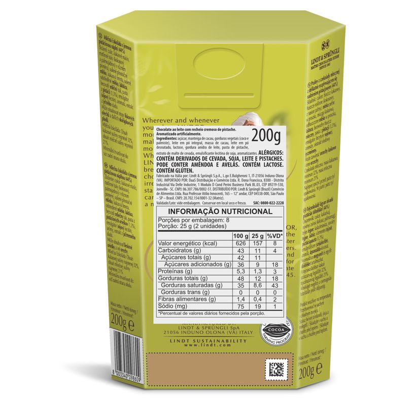 Chocolate Lindt Lindor Italiano ao Leite Recheio Cremoso de Pistache Caixa 200g