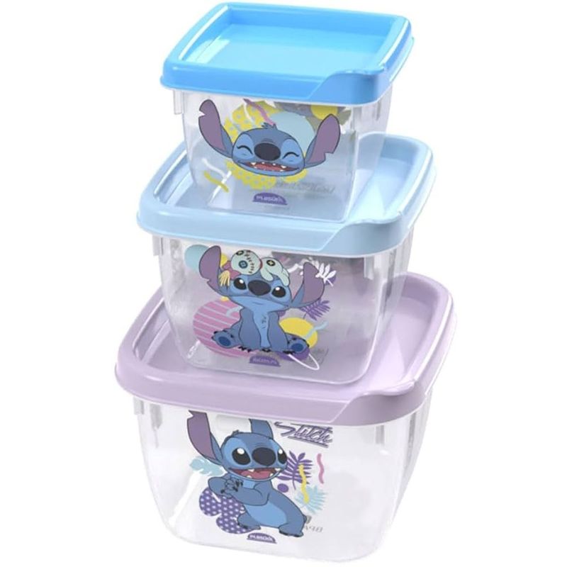 Conjunto de Potes Plasútil Quadrado Conect Plástico Stitch com 3 Unidades
