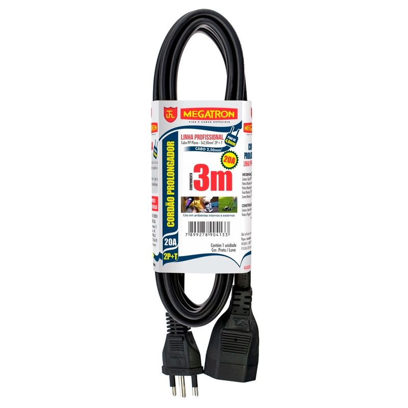 Cordão Prolongador Megatron 3 Metros 1 Tomada 20A Bivolt