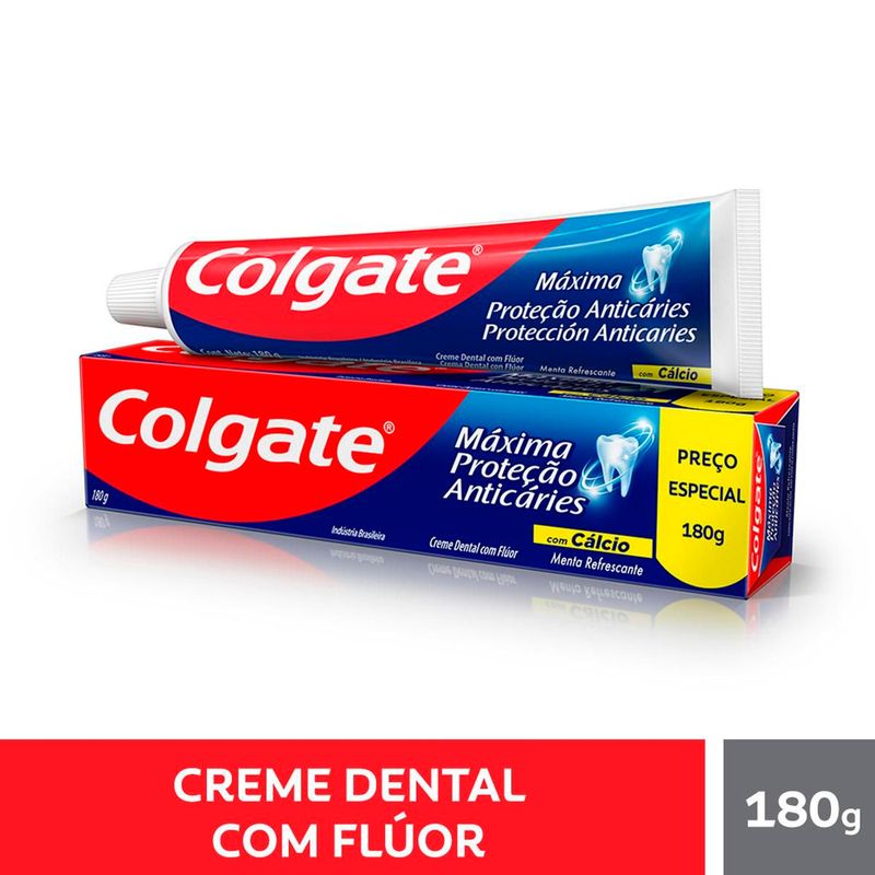 A pasta de dente Colgate Máxima Proteção Anticáries contém micropartículas de cálcio, que fortalecem os dentes e previnem a cárie, protegendo a sua saúde bucal e da sua família.