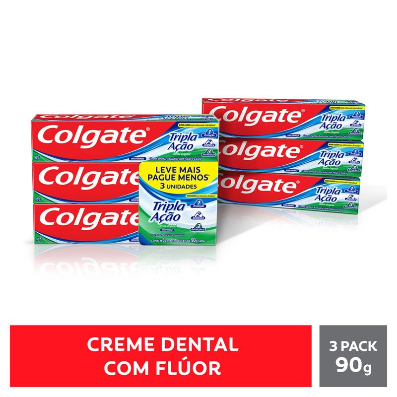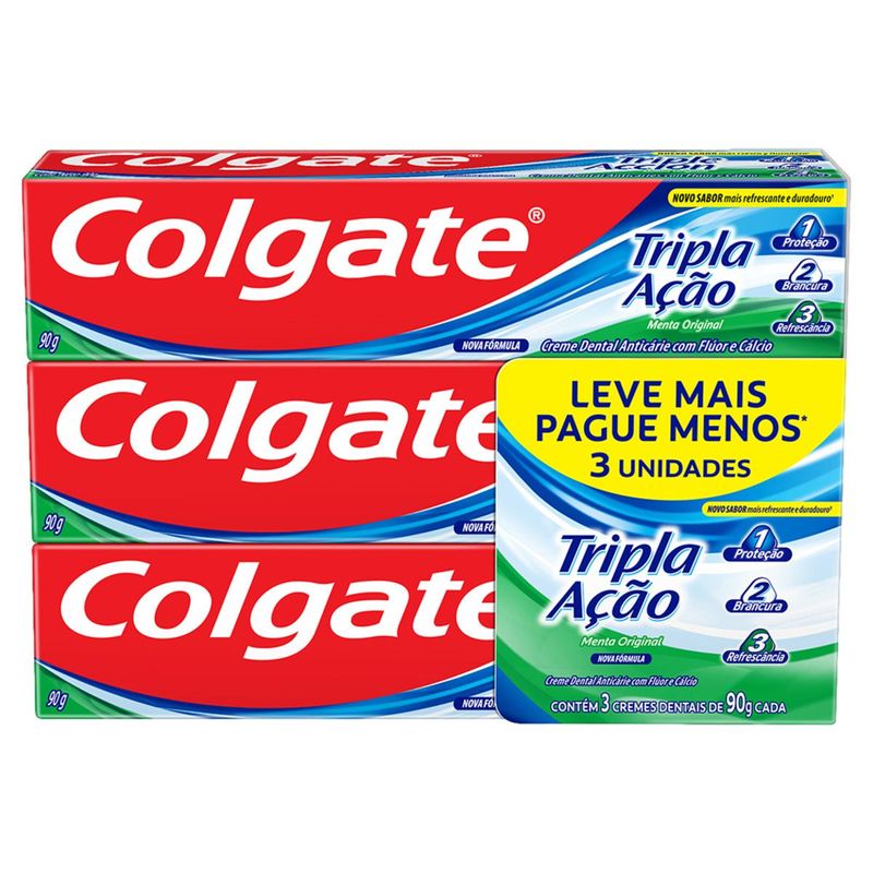 O creme dental Colgate Tripla Ação Menta Original proporciona tripla proteção para você e sua família: dentes brancos, protegidos e um hálito refrescante. Benefícios para você: Sua fórmula com flúor previne as cáries, proporcionando proteção para você e sua família Ajuda a remover as manchas amarelas para manter os seus dentes brancos Possui delicioso sabor de menta, que combate o mau hálito e deixa a sua boca com uma incrível sensação de refrescância Tripla proteção para você e sua família Leve Mais Pague Menos Sua fórmula com flúor previne as cáries, proporcionando proteção para você e sua família Ajuda a remover as manchas amarelas para manter os seus dentes brancos Possui delicioso sabor de menta, que combate o mau hálito e deixa a sua boca com uma incrível sensação de refrescância Tripla proteção para você e sua família Leve Mais Pague Menos