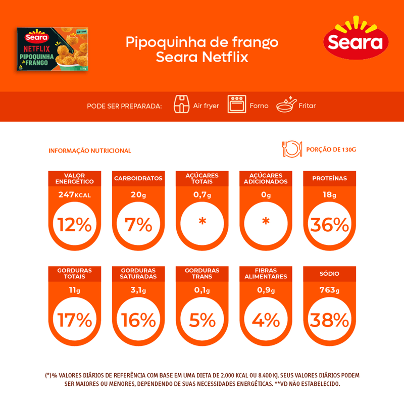 Empanado Pipoquinha Frango Seara Netflix Congelado 275g