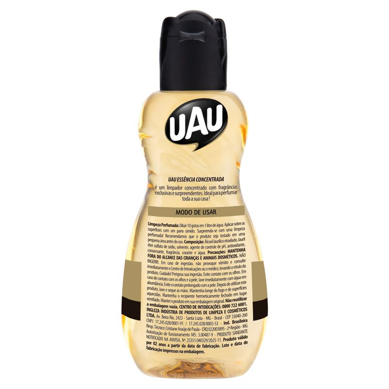 A essência UAU é formulada com ingredientes de alta qualidade, garantindo uma fragrância duradoura e envolvente. Sua concentração permite que você utilize apenas uma pequena quantidade para obter um efeito aromático intenso, tornando-a uma opção econômica e eficiente. A embalagem de 130ml é ideal para quem deseja experimentar diferentes aromas sem ocupar muito espaço.