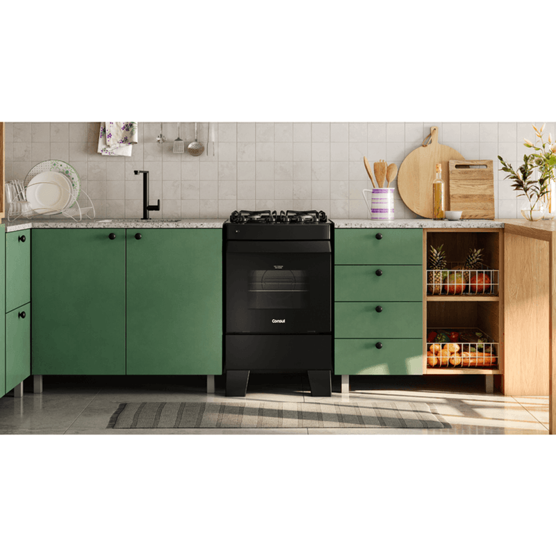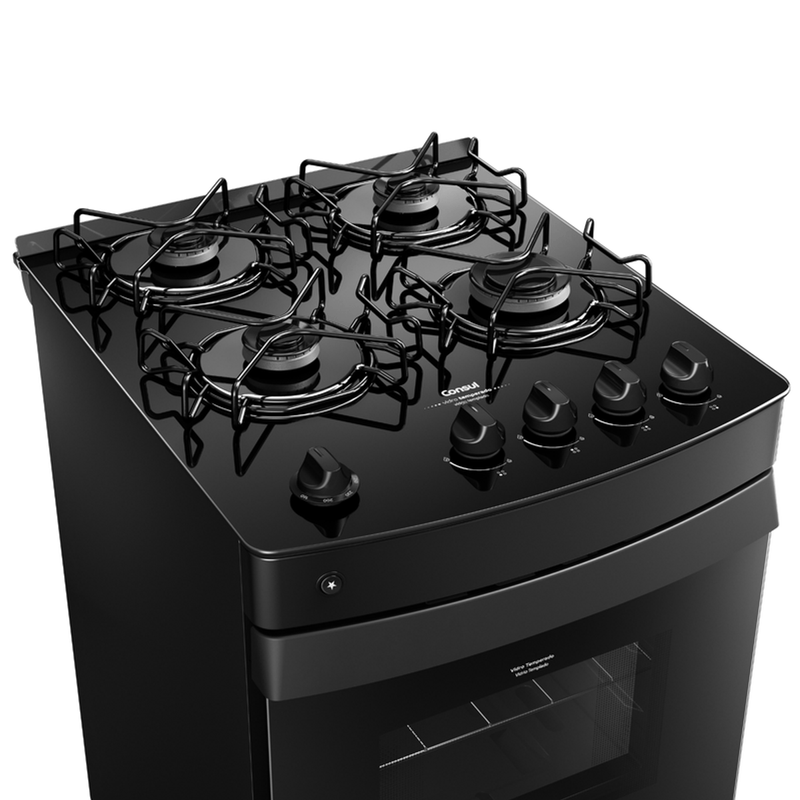 Fogão 4 Bocas Consul CFO4VCEUNA Mesa Vidro Preto Bivolt
