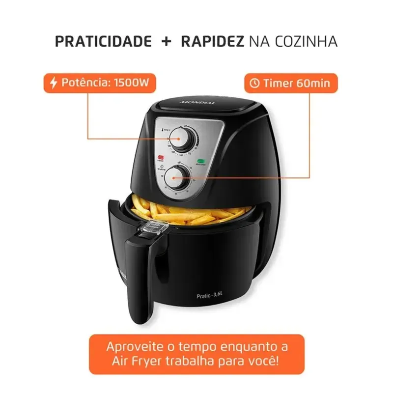 Fritadeira Air Fryer Mondial AF-36-BI 3,6 Litros Inox 220V