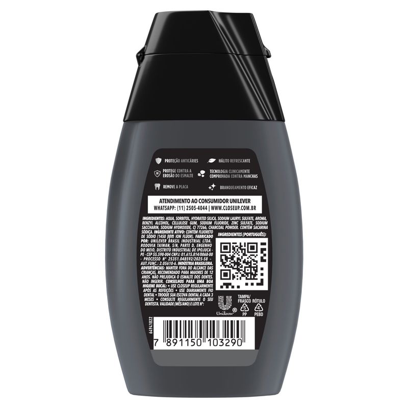 O carvão ativado é conhecido por suas propriedades de absorção, que ajudam a eliminar impurezas e manchas nos dentes. Ao utilizar o Gel Dent Closeup, você não apenas limpa seus dentes, mas também contribui para a manutenção de um sorriso radiante. A combinação com a menta proporciona um hálito fresco e duradouro, tornando sua rotina de higiene bucal ainda mais agradável.