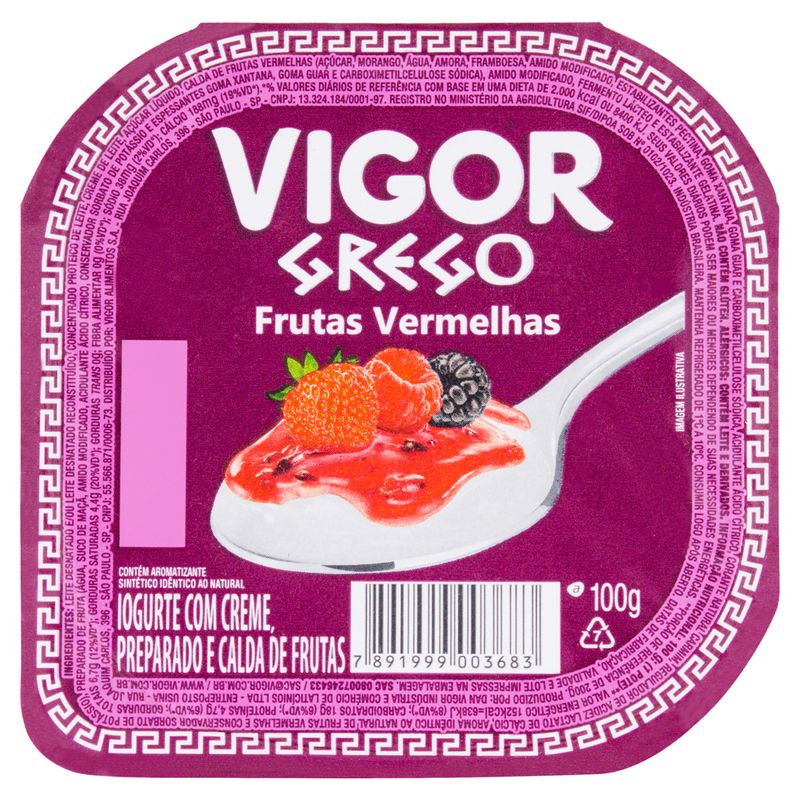 Iogurte Grego Vigor Calda de Frutas Vermelhas Pote 100g