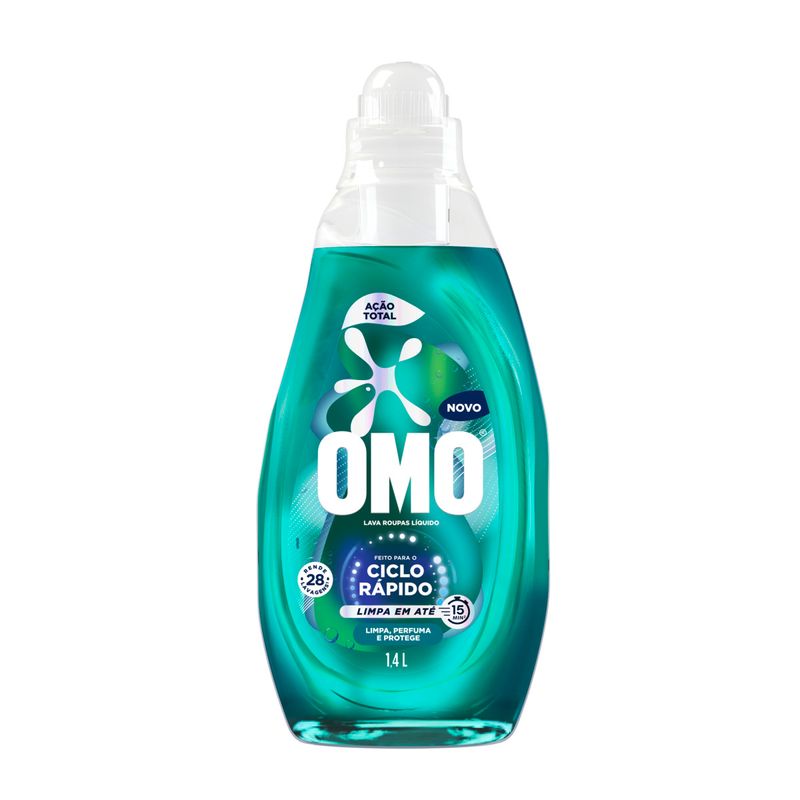Lava Roupas Líquido Omo Ciclo Rápido Ação Total Frasco 1,4 Litro