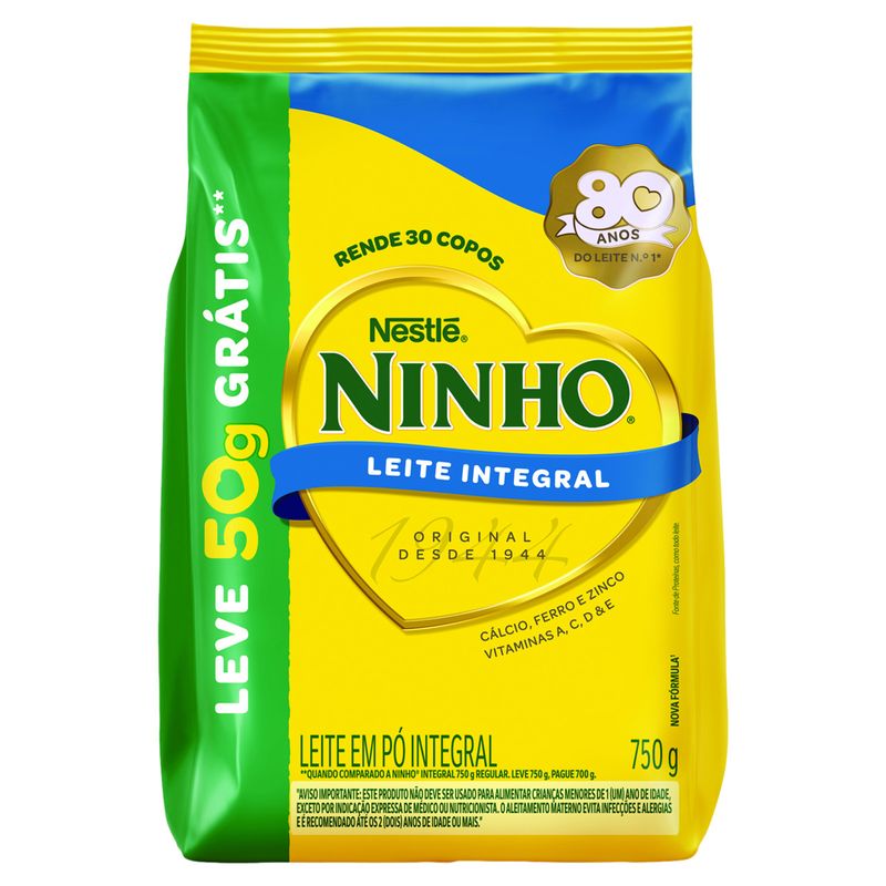 Leite em Pó Integral Ninho Forti+ Pacote Leve 750g Pague 700g