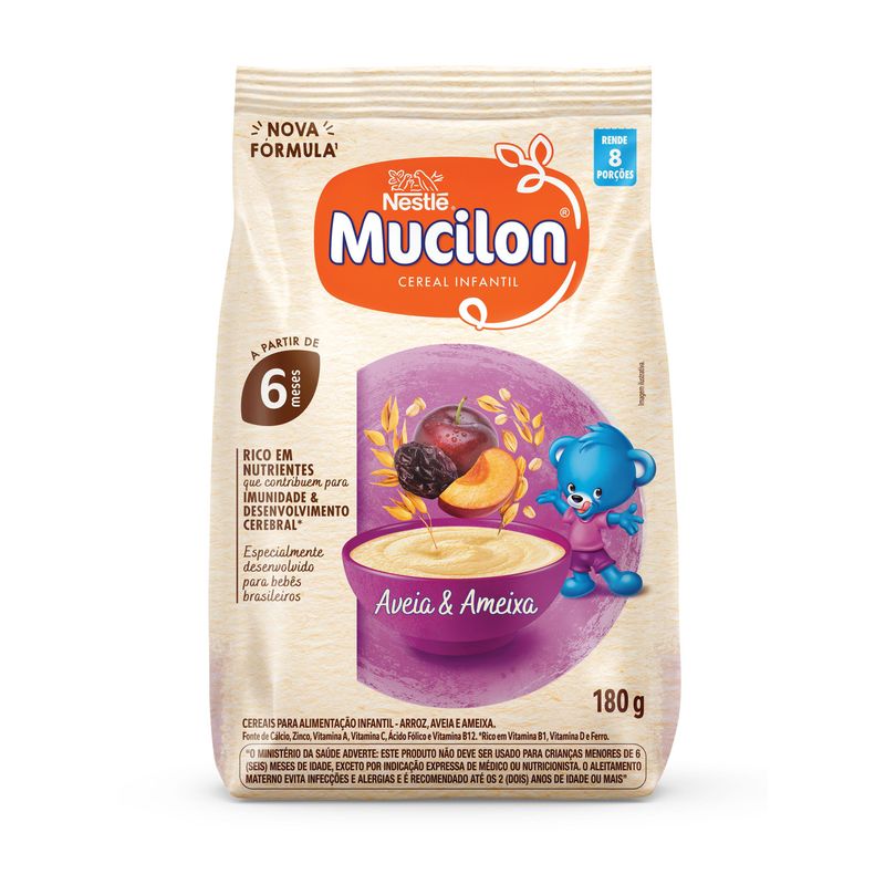 Mucilon de Aveia com Ameixa é indicado para complementar a alimentação de crianças a partir de 6 meses, além de ser uma ótima opção para lanches intermediários. É um cereal infantil que é rico em nutrientes que contribuem para a Imunidade e Desenvolvimento Cerebral. Quando você oferece Mucilon para bebês a partir de 6 meses, está dando uma importante fonte de energia e nutrientes que contribuem para o seu crescimento e desenvolvimento.