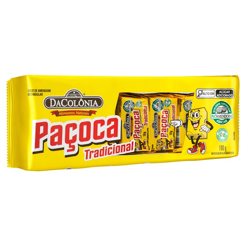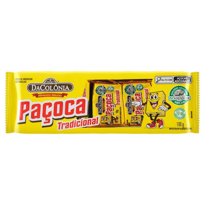 A embalagem de 180g é ideal para levar na bolsa ou na mochila, tornando-se uma opção prática para quem está sempre em movimento. Com a Paçoca Dacolonia, você pode ter um pedacinho do Brasil ao seu alcance, a qualquer hora e em qualquer lugar.