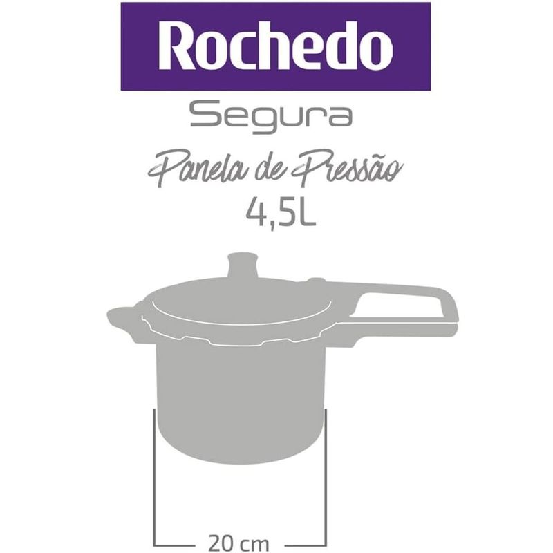 Panela de Pressão Rochedo Antiaderente Fechamento Externo Grafite 4,5 Litros