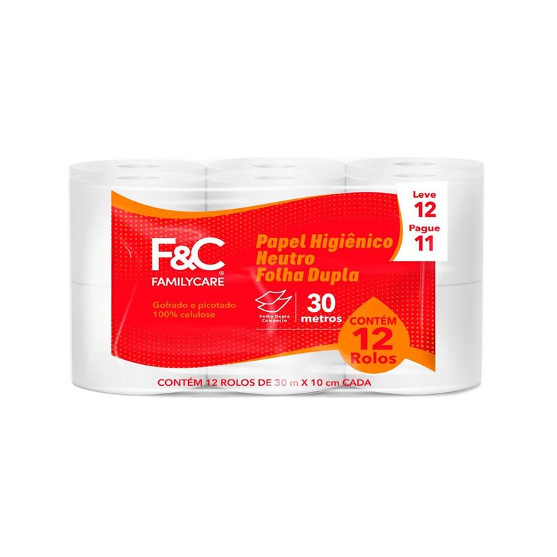 Papel Higiênico Familycare Folha Dupla Neutro 30m com 12 Unidades