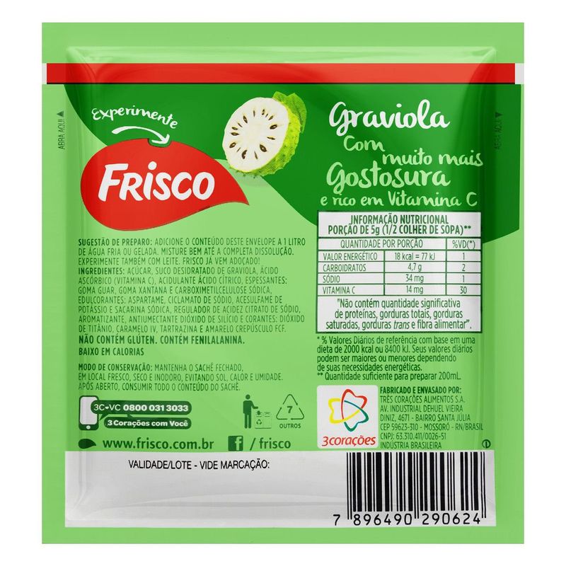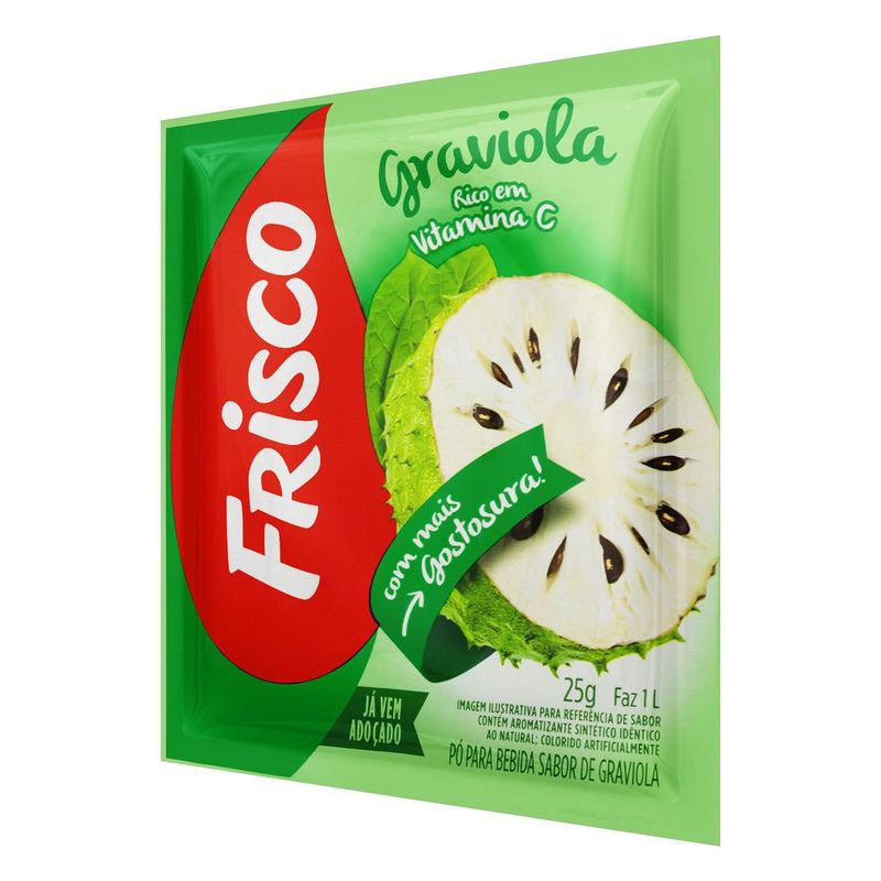 O suco em pó Frisco Graviola é uma bebida para matar a sede com muito sabor e acompanhar você em todas refeições. De cara nova, traz o delicioso gosto das frutas com muito mais vitaminas. O refresco em pó Frisco já vem adoçado e rende 1 litro neste sachê de 25 gramas, que você pode levar e preparar em qualquer momento e lugar.