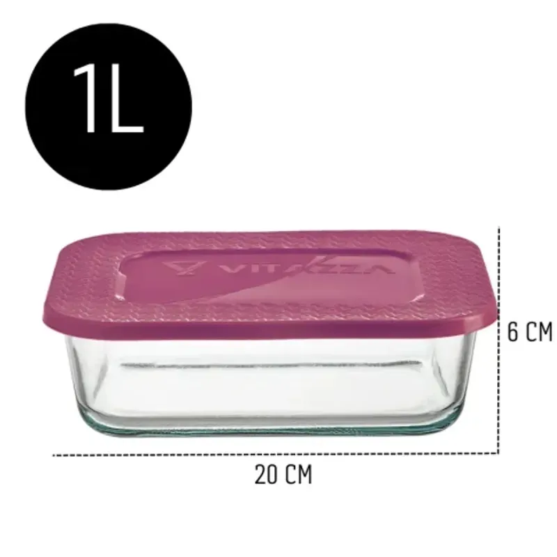 Pote Retangular de Vidro Vitazza com Tampa 1 Litros