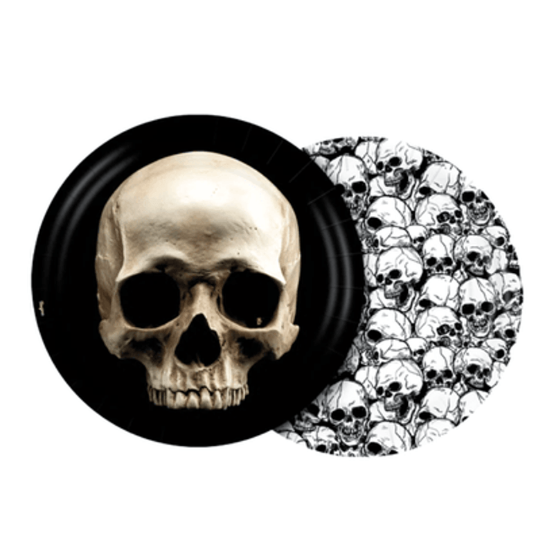 Prato Regina Halloween Papel Redondo Preto e Branco 18cm com 8 Unidades
