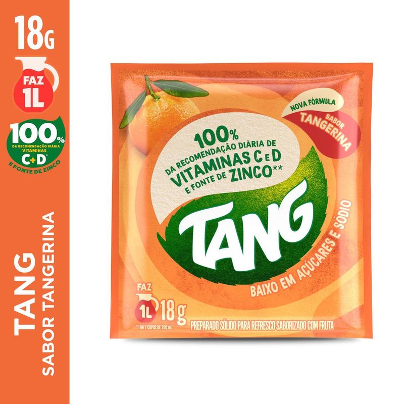 Compre agora o Refresco em pó Tang sabor Tangerina. O novo Tang tem 100% da recomendação diária de vitamina C e D em 2 copos de 200ml e é fonte de zinco. Mais sabor e nutrientes! Faz 1 Litro para você e a família aproveitarem! Compre já!Tabela Nutricional e Alergênicos: Veja a tabela nutricional e ingredientes nas imagens.
