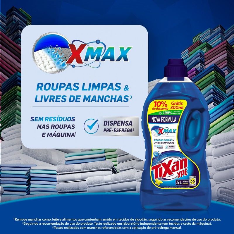 O Lava Roupas Tixan Ypê Primavera é reconhecido por sua eficiência na limpeza das roupas e tecidos, com menos esforço. Com enzimas ativas, Tixan Ypê limpa as sujeiras mais difíceis e deixa um agradável perfume que prolonga a sensação de roupa limpa! Lava-Roupas Tixan Ypê Primavera deixa as roupas da sua família do jeito que você gosta, sem pagar mais por isso!