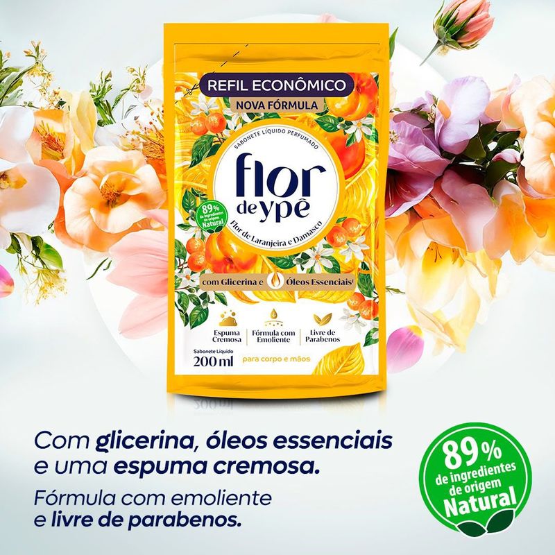 Sabonete Líquido Flor de Ypê Flor de Laranjeira e Damasco Refil 200ml