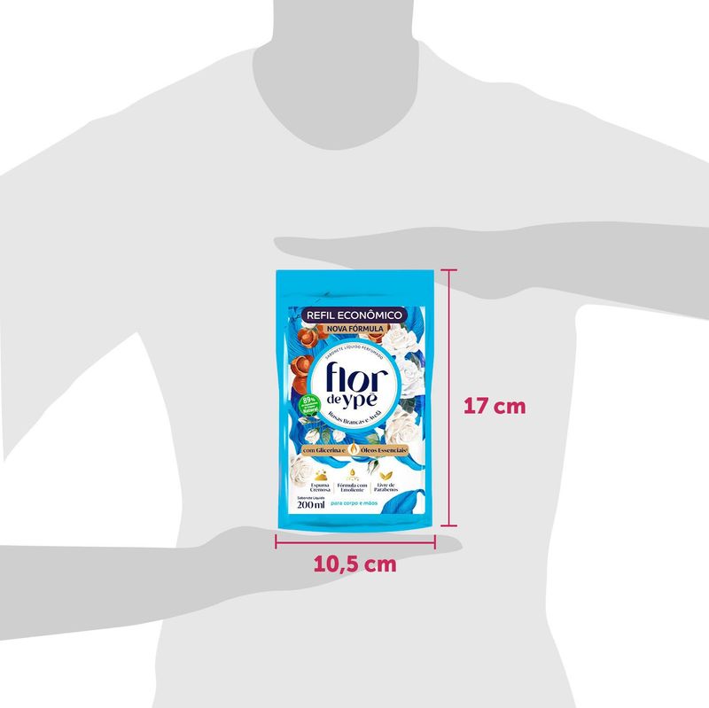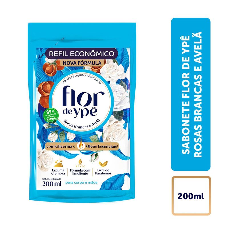 Sabonete Líquido p/ Corpo e Mãos Flor de Ypê Rosas Brancas e Avelã Sachê 200ml Refil Econômico