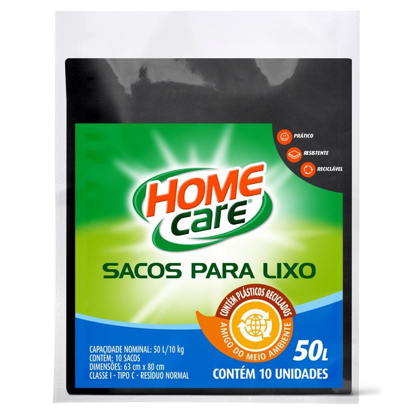 Saco para Lixo Home Care Almof Preto 50 Litros com 10 Unidades