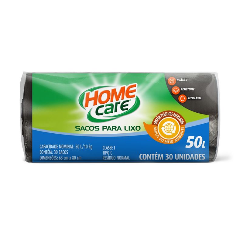 Saco para Lixo Home Care Rolo Preto 50 Litros com 30 Unidades