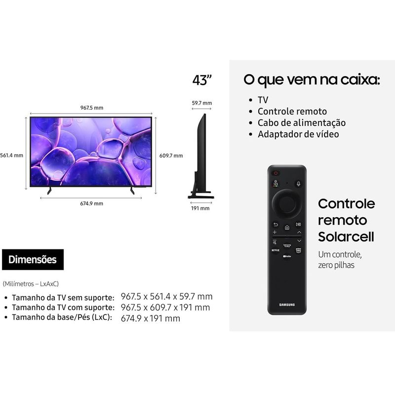 Smart TV 43 Polegadas Samsung LED UN43U8100FGXZD 4K Wi-Fi Tizen Crystal UHD