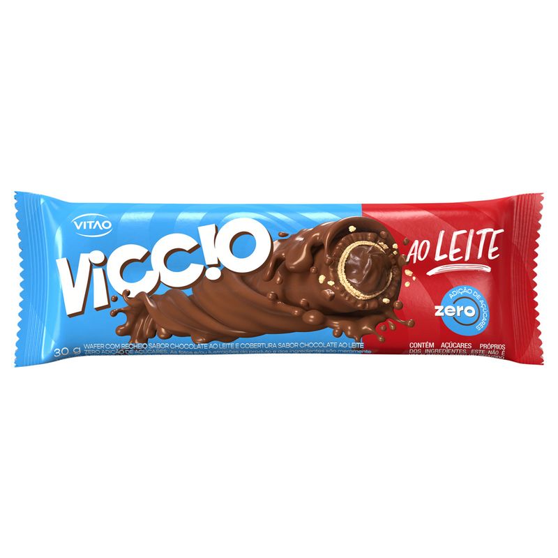 Wafer Viccio Zero Adição de Açúcar Recheio Avelã Cobertura Chocolate ao Leite 30g